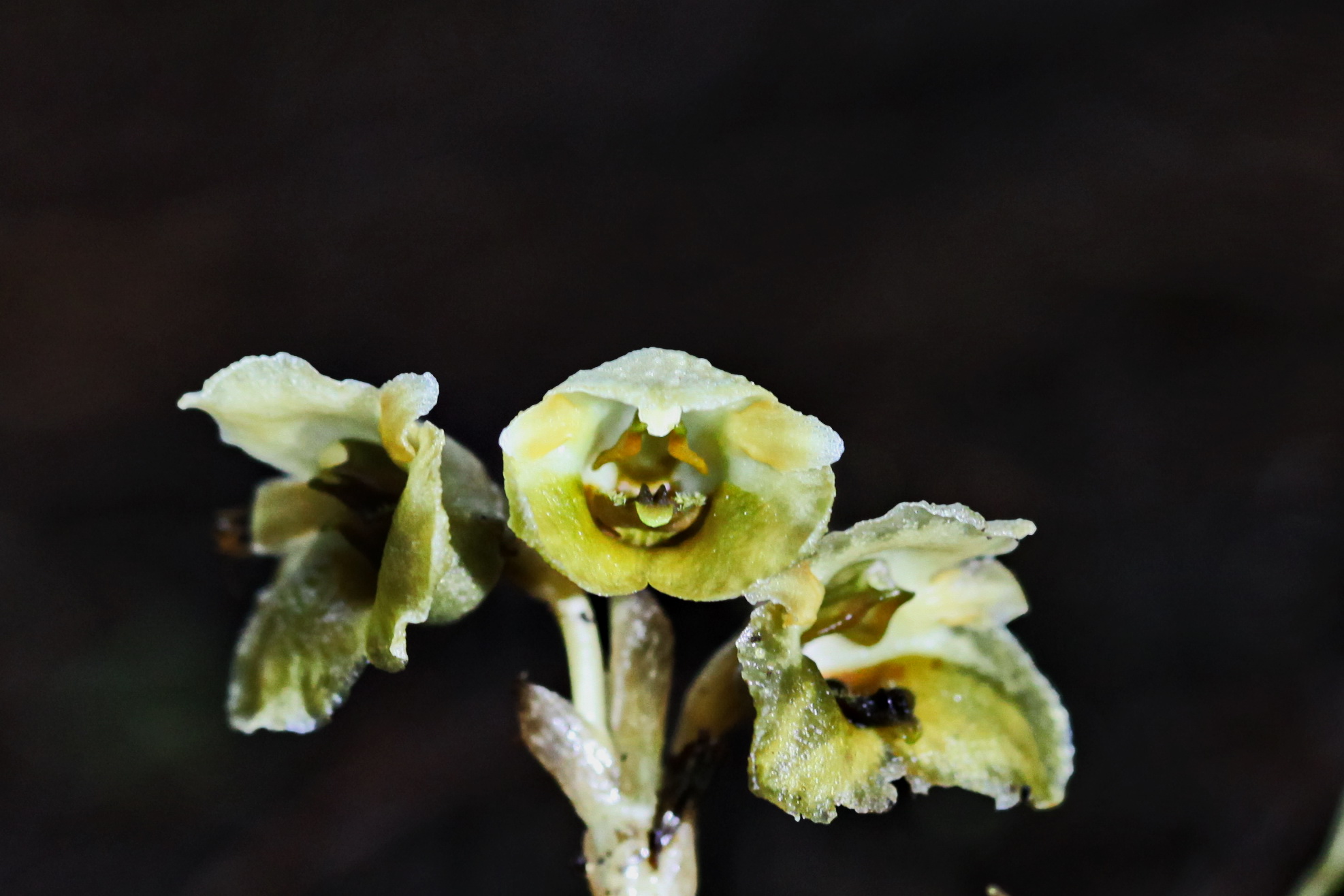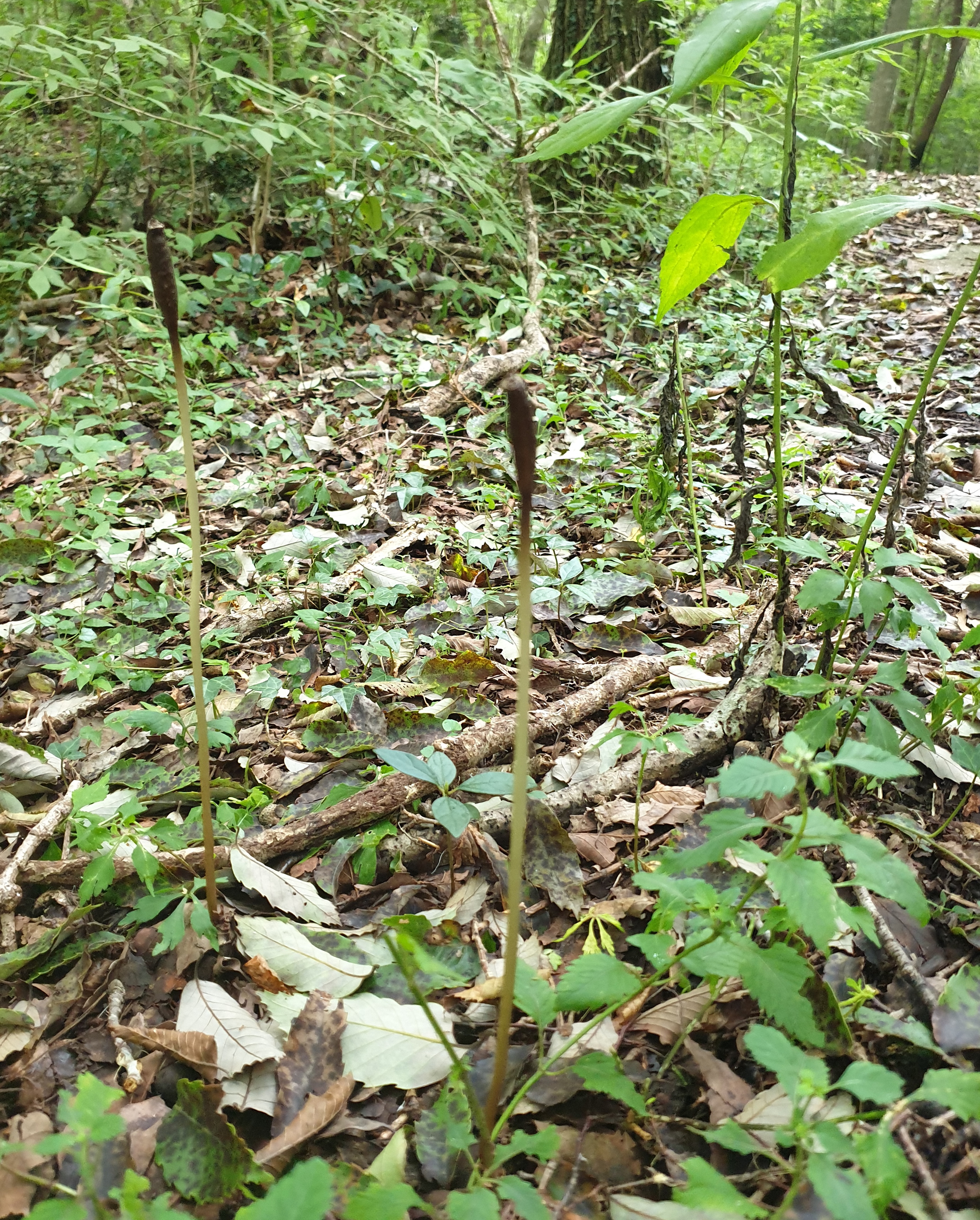 한라천마; 한라산 깊은 숲속에서 자라는 난초과의 잎이 없는 부생식물이다. 천마가 긴 꽃대를 가진 것과는 달리 9월에 1~5개가 달린 아주 작은 꽃을 피우는데 꽃이 지고 나면 길게 올라온 씨방 주머니로 변한다. 개체 수가 적다 보니 꽃 피는 곳에서는 엎드리기 위해 줄 서 있는 장면을 보게 된다. 천마 종류의 꽃말은 "외로움"