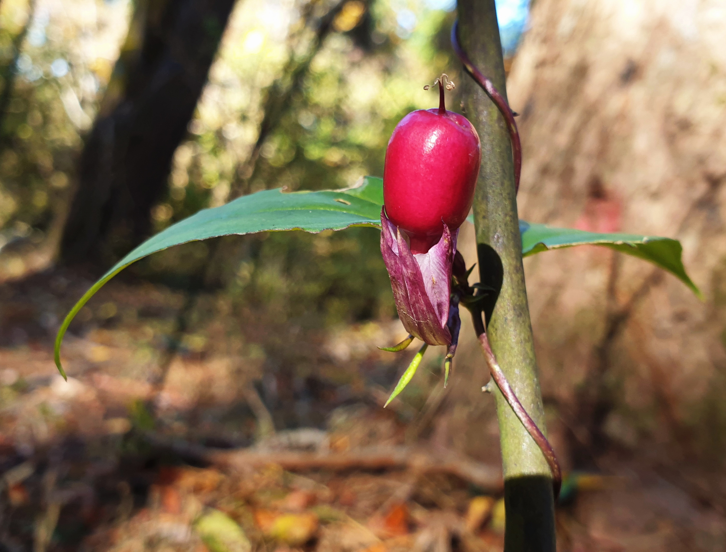 덩굴용담; 제주도와 울릉도의 산기슭 음지에서 자라는 덩굴성 여러해살이풀이다. 나뭇가지 등을 감고 올라 9~10월에 잎겨드랑이에서 흰색 또는 보라색 꽃을 피운 후 11~12월에 붉은 열매를 꽃 속에서 토해낸다. 희귀 멸종위기종으로 지정되어 있다. 한방에서는 청어담초라 하여 황달 등에 사용한다고 한다. 꽃말은 "당신의 슬픈 모습이 아름답다."