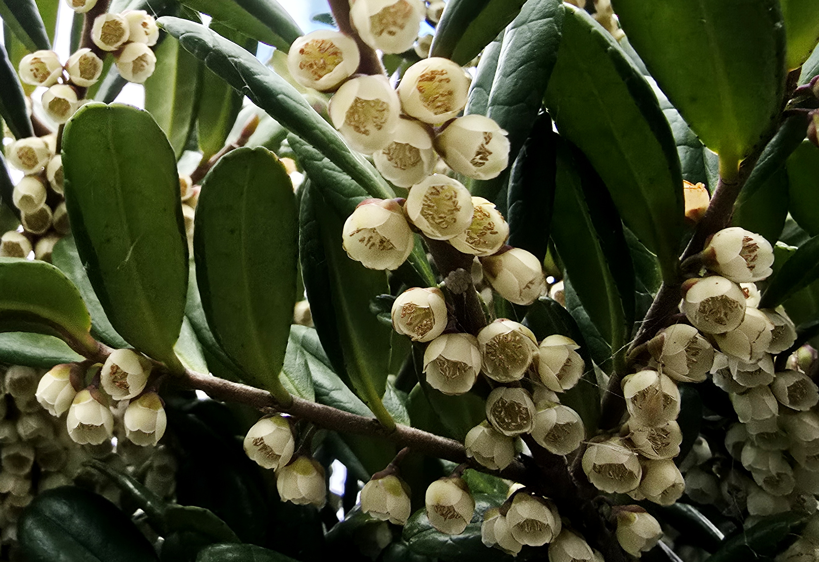 우묵사스레피나무; 남부 지방의 바닷가에서 사는 나무로 제주도 남쪽 지역에서 특히 많이 볼 수 있으며 섬쥐똥나무로도 불린다. 사스레피나무의 일종으로 잎이 움푹 들어갔다고 하여 우묵사스레피라는 이름 붙었는데 사스레피나무가 봄에 꽃이 피고 심한 분뇨성 악취를 풍기는 것과 달리 늦가을부터 겨울에 꽃이 피고 냄새도 덜한 편이다. 바닷바람이 심한 곳에서는 나무가 모두 바람이 지나가는 방향으로 납작하게 눕는 특이한 수형을 나타낸다. 민간에서는 이뇨와 담 제거 등에 약재로 썼다고 한다. 꽃말은 "기억 속에 새기다"