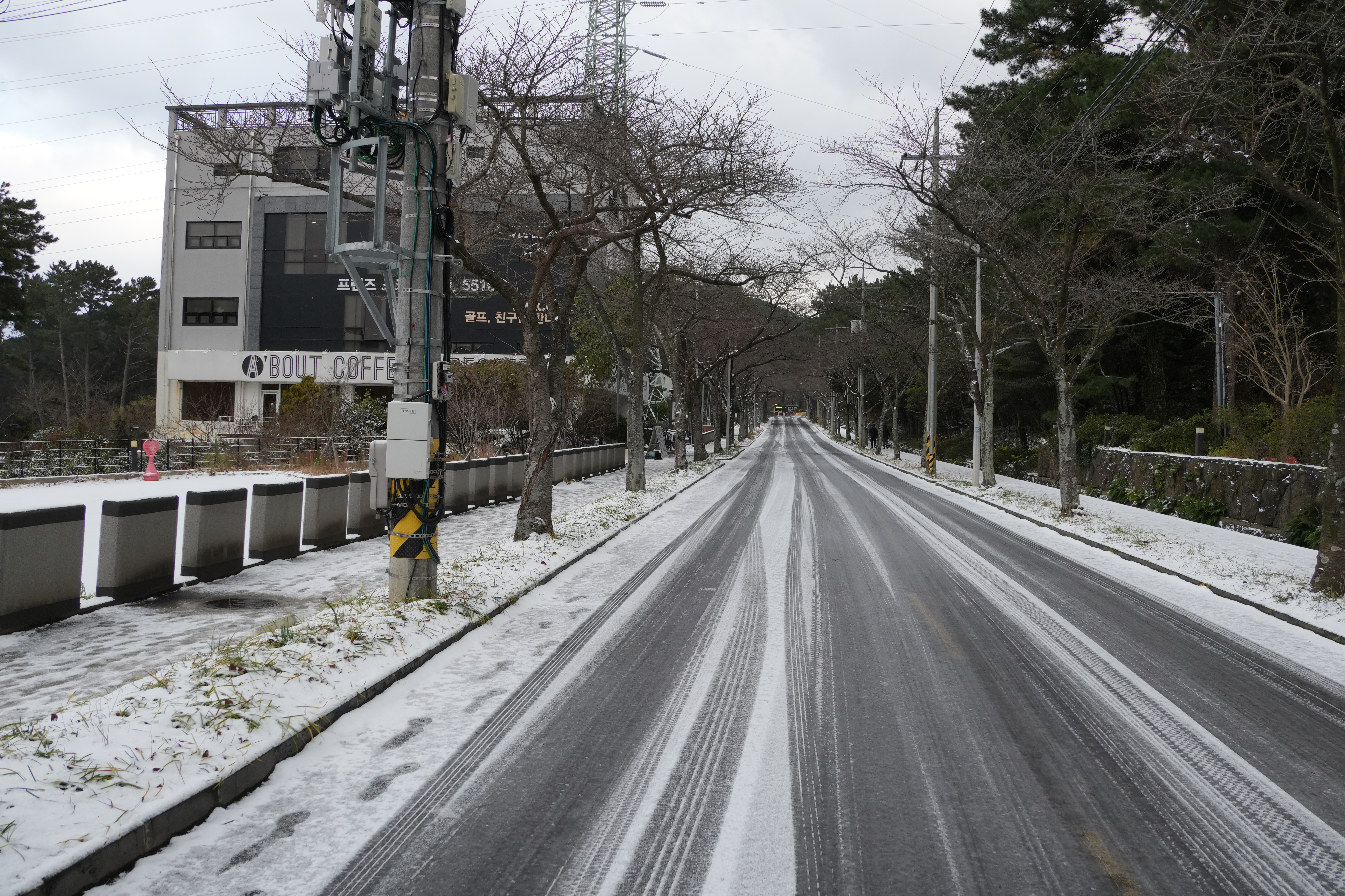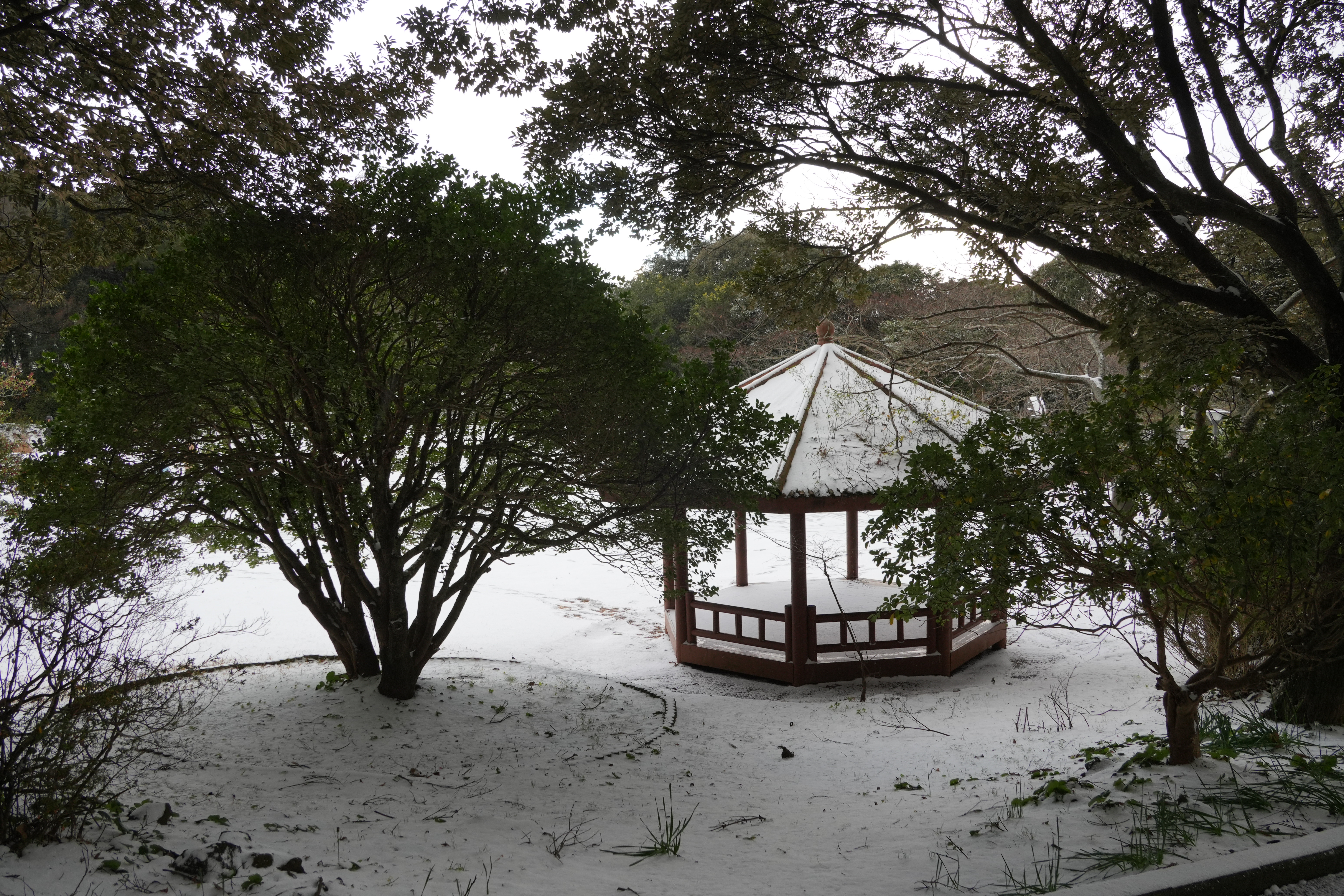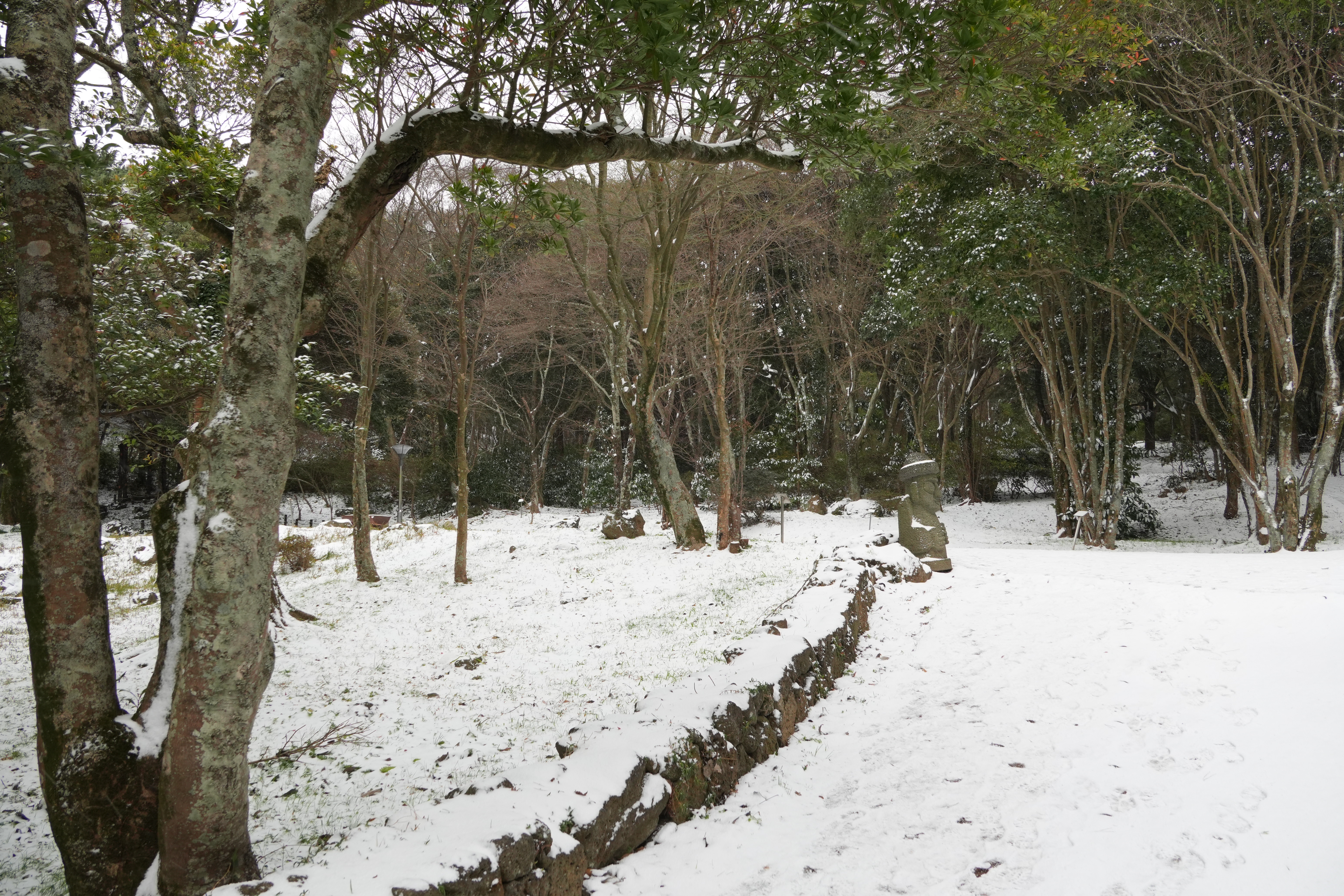 제주시 연동에 있는 한라수목원은 신제주 아파트촌의 남쪽에 있기에 눈이 쌓이는 경우가 별로 없지만