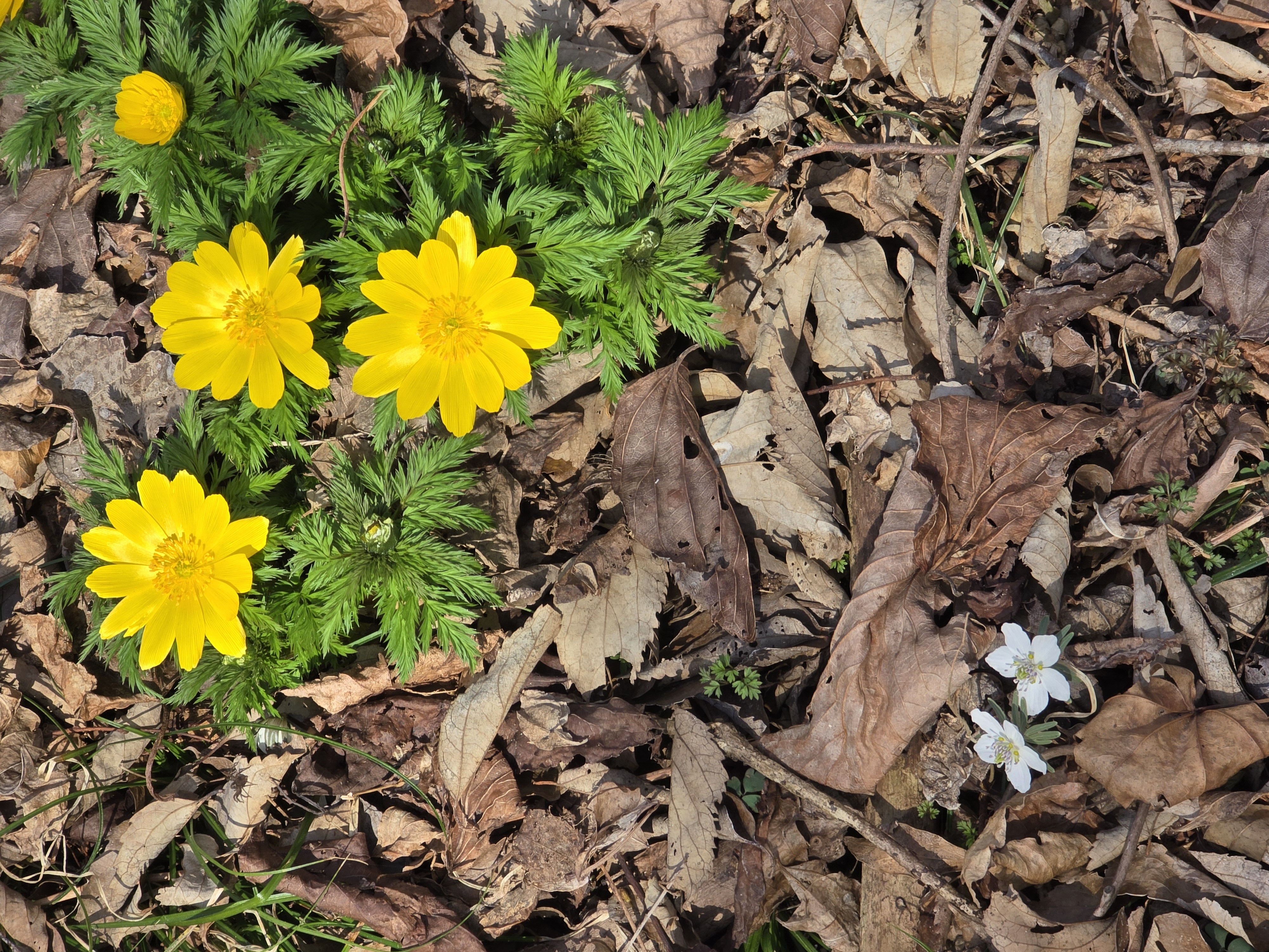 세복수초; 이른 봄의 상징인 복수초는 눈에서 나온다고 해서 설련화, 눈색이꽃이라 하고 새해 일찍 핀다고 해서 정수화, 원일초라고 부르며 한자로는 측금잔화, 서양에서는 아도니스라는 이름이 있다. 개복수초를 비롯해 종류도 여러 가지가 있고 분류도 여러 설이 있는데 제주도에서 자라는 것은 잎이 가늘다 하여 세복수초로 명명되어 있다. 꽃말은 "영원한 행복"