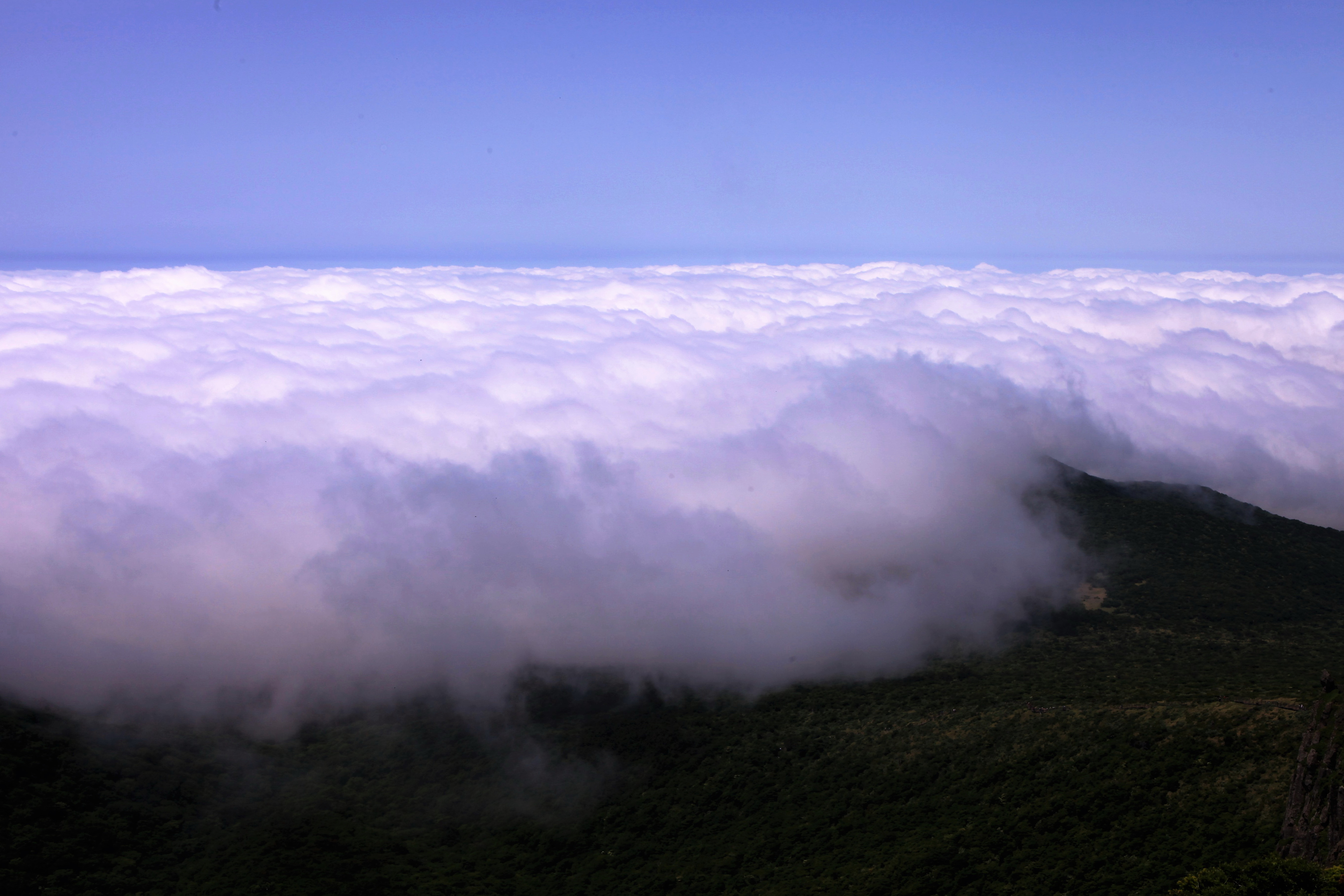 한라산의 마음이 울적할 땐 두꺼운 구름 장막을 쳐주고