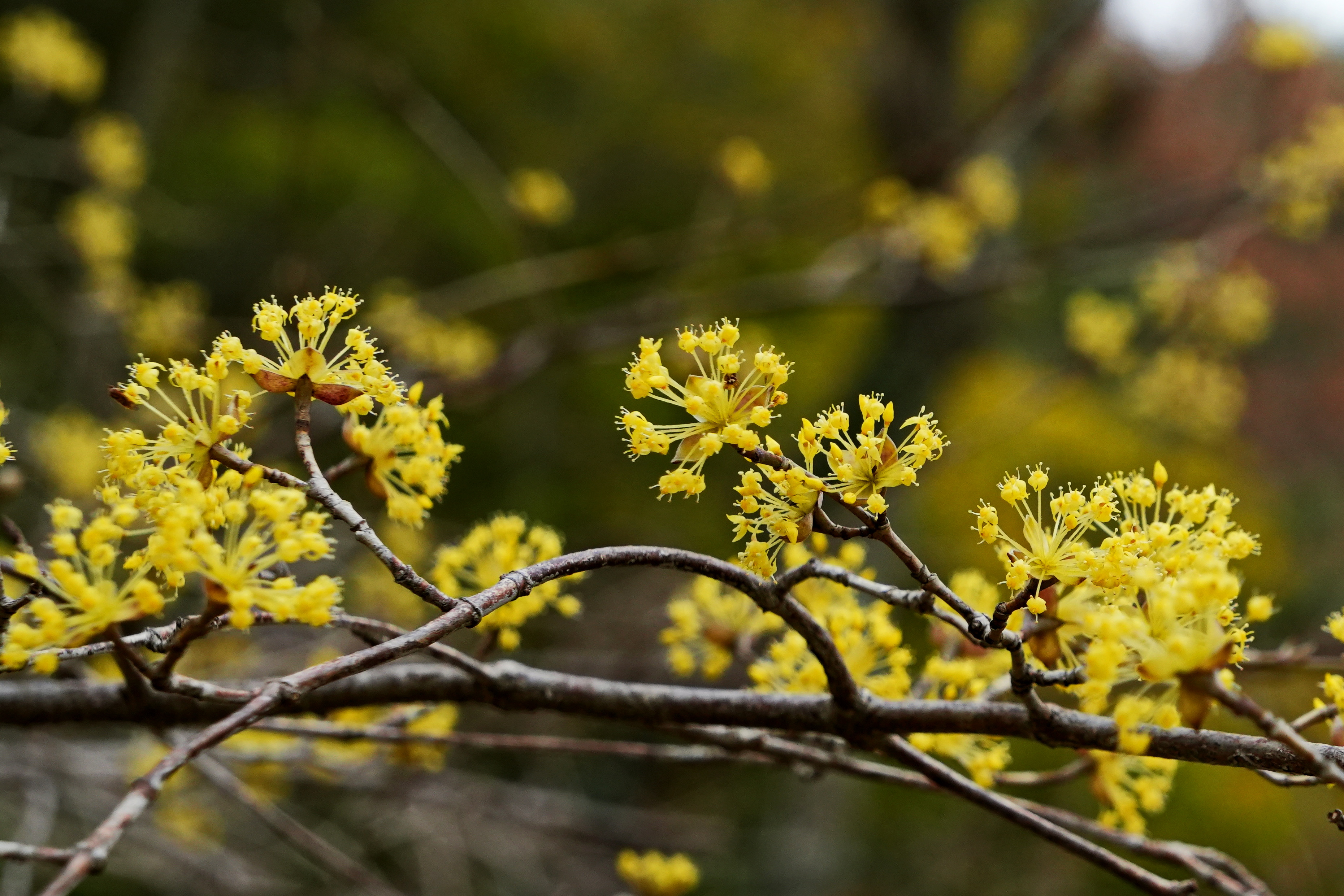 산수유; 층층나무과의 낙엽성 소교목으로 이른 봄 잎이 나오기 전에 노란색의 꽃이 먼저 핀다. 산에서 봄을 알리는 꽃으로 인정받고 있다. 가을에 긴 타원형의 붉은 열매를 맺는데 이 열매의 명칭이 산수유로서 다양한 약리작용을 한다. 민간에서 오래전부터 강장제로 차와 술로 활용했다. 각종 한방 의서에 신장, 생식기능, 두통, 이명, 해수병, 관절 등에 탁월한 효과가 있는 것으로 기록되어 있다. 꽃말은 "봄맞이, 영원불변의 사랑"